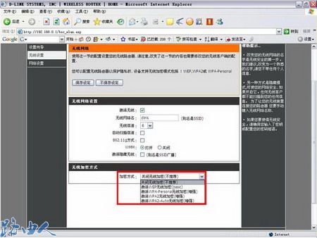 四、有以下安全方式可供选择:WEP、WPA-Personal、WPA2和WPA2-Auto。对于一般用户选择WEP和WPA-Personal这种方式。