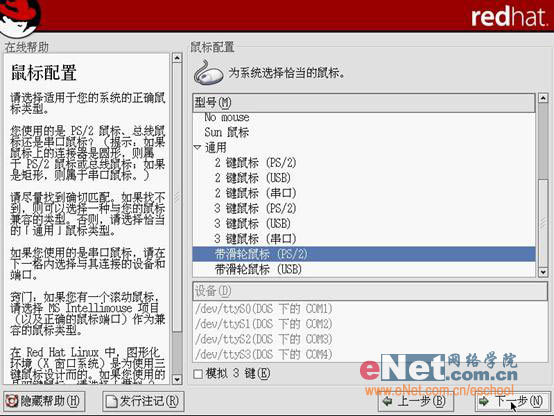 第五步:键盘以及鼠标设置。在选项中提供了多种型号,品牌,接口和语言的键盘和鼠标,根据你现所用的键鼠进行对应选择。选择完毕后单击“下一步”