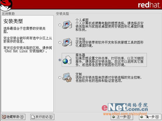 第六步:安装类型。其中包括“个人桌面”,“工作站”,“服务器”,“定制”。四种类型名称不同,内容大同小异。由于篇幅所限这个会在日后的讲座中给大家详细介绍。