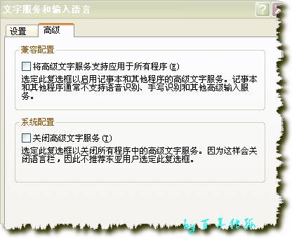 1,最常见的,启用了高级文字服务引起的,可以在控制面板--区域和语言选项--语言--详细信息--高级--两个都不要选,如图: