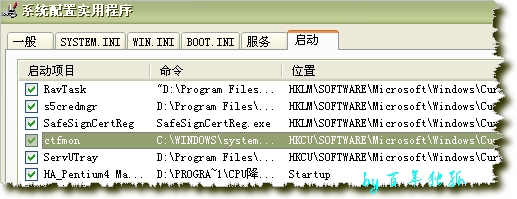 msconfig--启动--把ctfmon.exe钩上。如图: