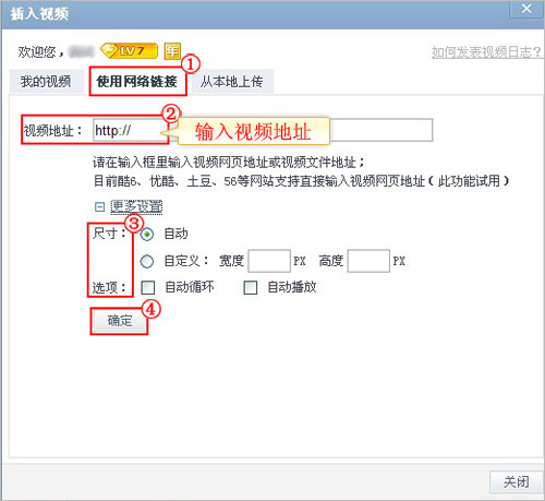 2、使用网络链接视频地址;(非黄钻用户也可以使用。)